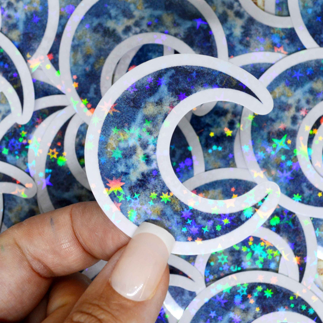 Ajoutez une touche magique et scintillante à vos objets du quotidien avec ce sticker holographique unique représentant une lune bleue à l'aquarelle. Ce stickers est une décoration idéale pour vos carnets, ordinateurs, téléphones et bien plus encore.